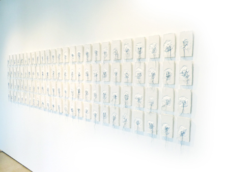 100 representative plates of an individual are arranged next to each other. Reflection of the memorial work :