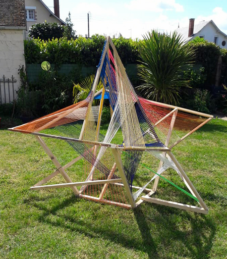In the continuity of this reflection, the public is invited to weave links by connecting colored threads stretched over the structure.