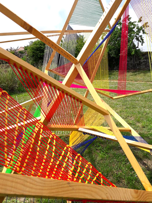 Dans la continuité de cette réflexion, le public est invité à tisser des liens en reliant des fils de couleurs tendus sur la structure.