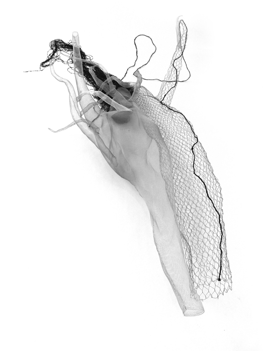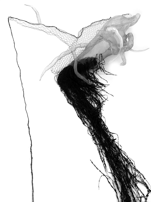 Module 08 - composant rhizomique Installation au sol/volume Fil d’aluminium et moustiquaire en aluminium, grillage, lin teinté et fil noir enduit de plastique L80 l50 H220 cm 2015