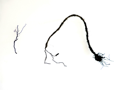 Instant végétatif (détail) Filasse teintée, végétaux racines séchés teintés, mousse végétale séchée teintée. L30 cm H25 cm 2015