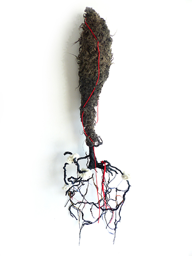 Instant végétatif (détail) Racines séchée, laine, fil, fourrure synthétique teintée. L30 cm l20 cm H100 cm l’élement 2015