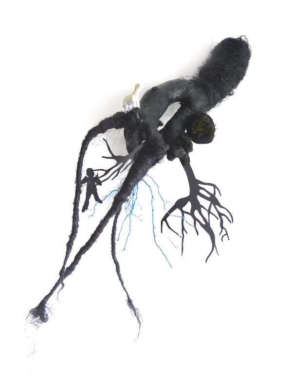 est une œuvre en collaboration avec mon fils de 7 ans, j’ai commencé l’œuvre avec les racines naturelles.