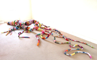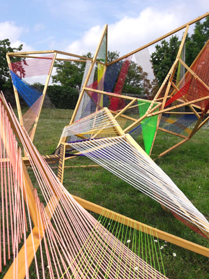Dans la continuité de cette réflexion, le public est invité à tisser des liens en reliant des fils de couleurs tendus sur la structure.